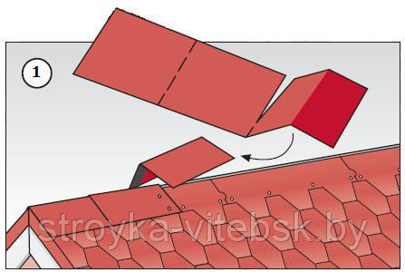 Размер 1 гонта коньково-карнизной черепицы: 1000х250 мм.
